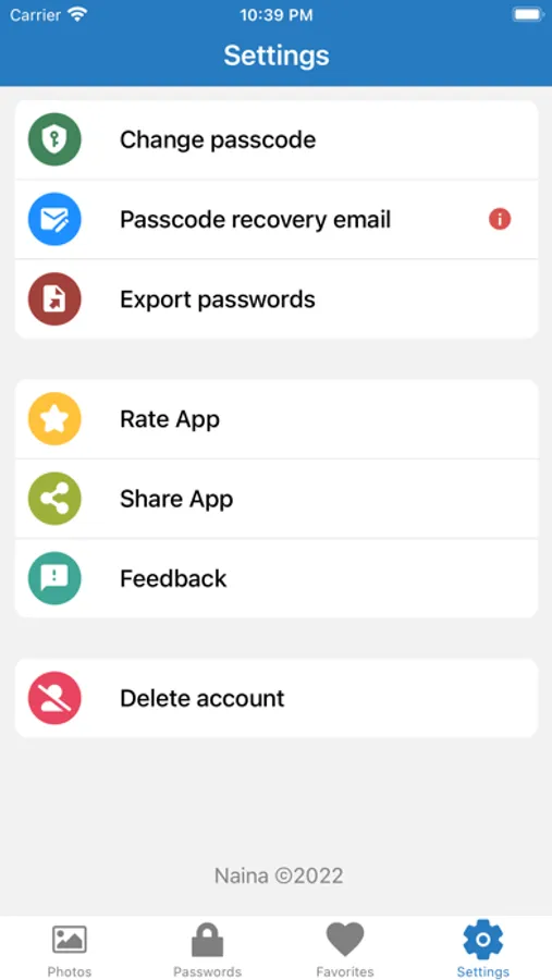 Your account is protected with 4 digits of passcode which you'll be asked to set up when opening the app for the first time. You can always change your passcode in the settings page.