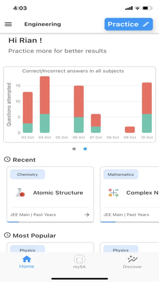 VMC student app is designed for high school students to improve their college readiness. The app lets the students learn and practice core concept of Math, Physics and Chemistry. Students can review improvement in their skills via daily reports and strengthen their understanding by reviewing solutions. The app also provides general guidance to students via a chatbot interface