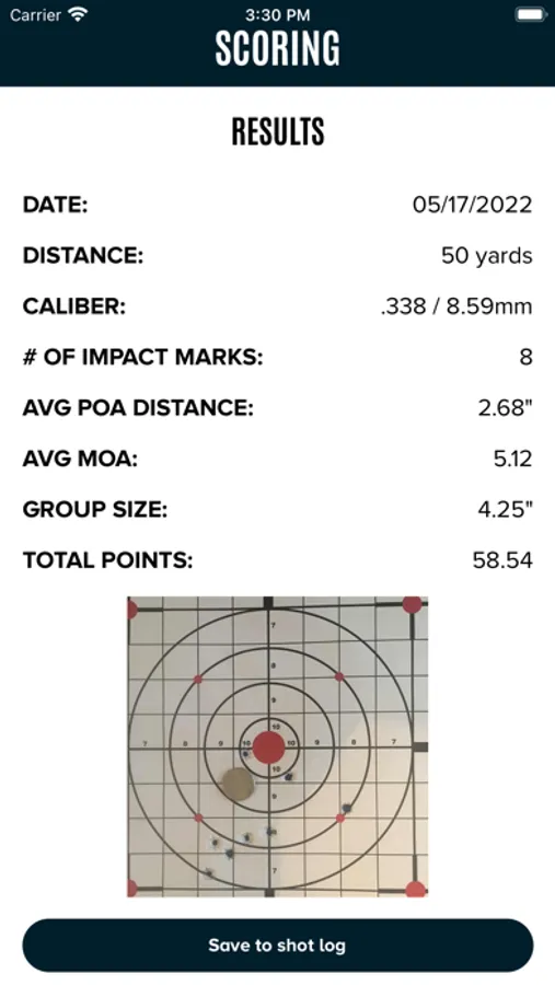 *Shot Log allows you to save every scored target with stats such as group size, MOA & distance from point of aim.