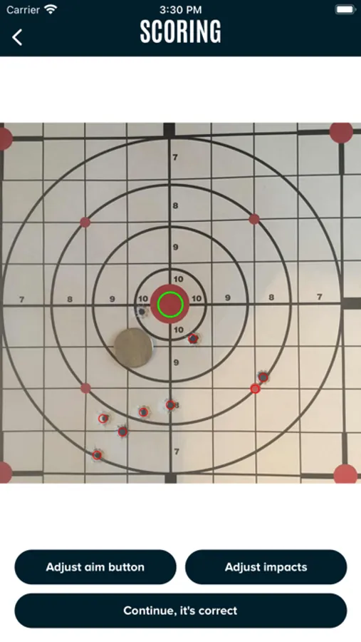 *Score your targets by selecting the distance from your target, caliber and shots fired. Then you place a quarter on the target and take a picture of the target. The picture must show the bullseye, bullet impacts and quarter. Once the picture is taken the app will automatically calculate your distance from bull's-eye, MOA & grouping. With premium version your score will be uploaded to your shotlog.