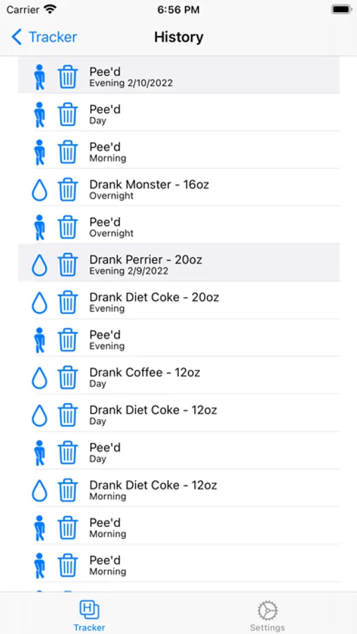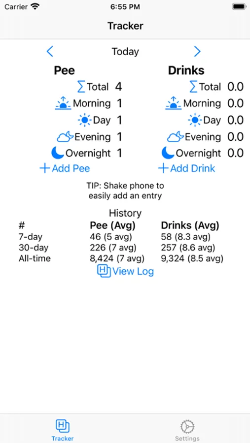 Are you going too often? Our super simple tracker allows tracking how often you go with just a shake.