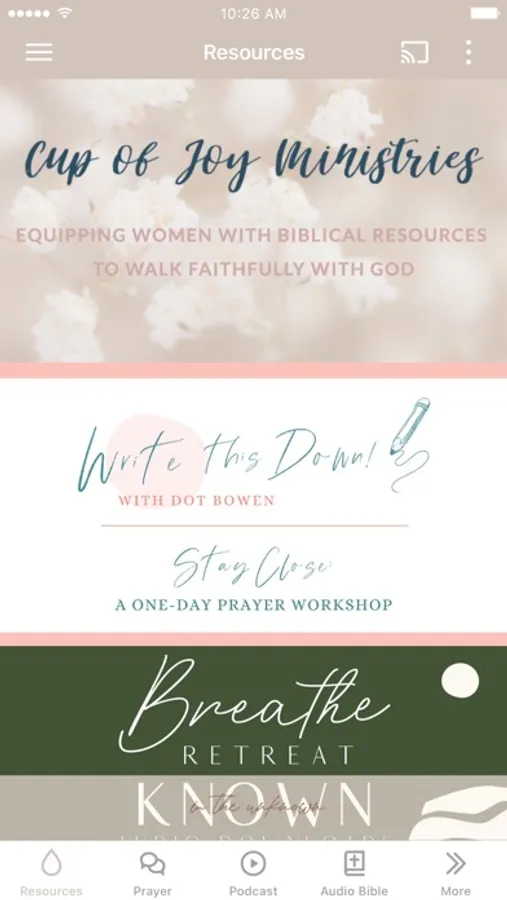 You can also register for new events, read the Bible, listen to the newest episodes of the Write this Down! With Dot Bowen podcast, and receive important information in real time during Cup of Joy Ministries and Dot Bowen events! The Cup of Joy Ministries app will help equip you with Biblical resources to walk faithfully with God.