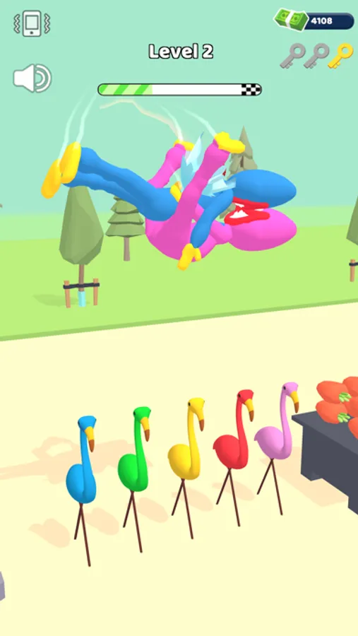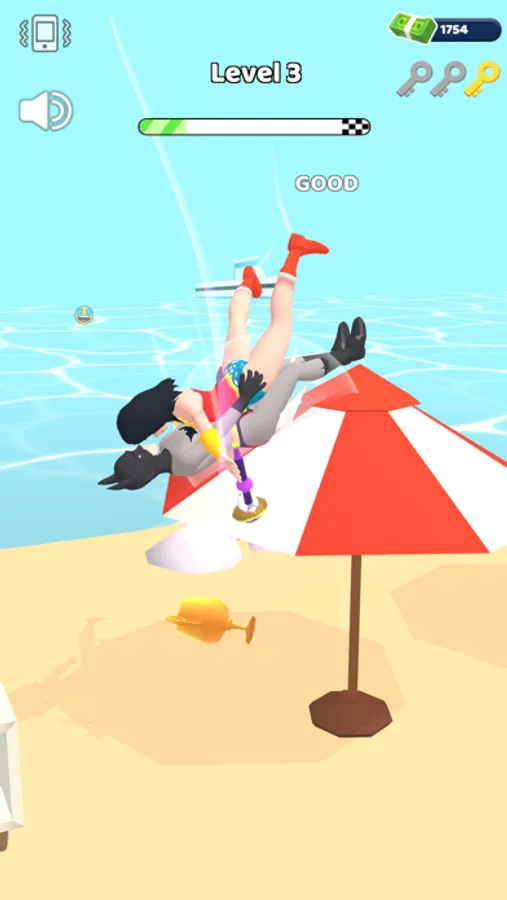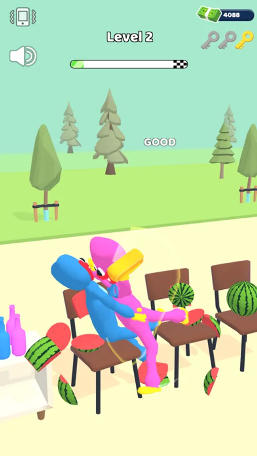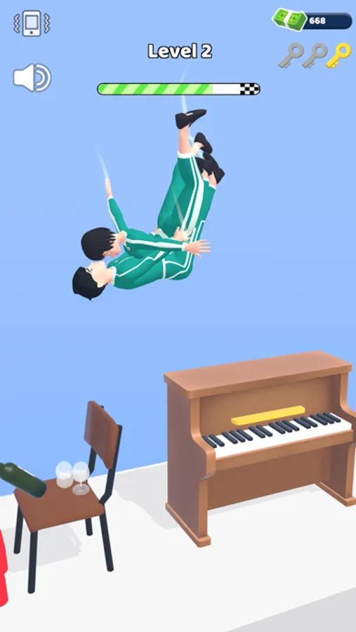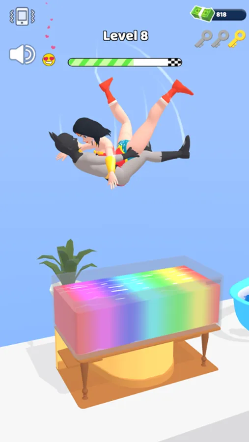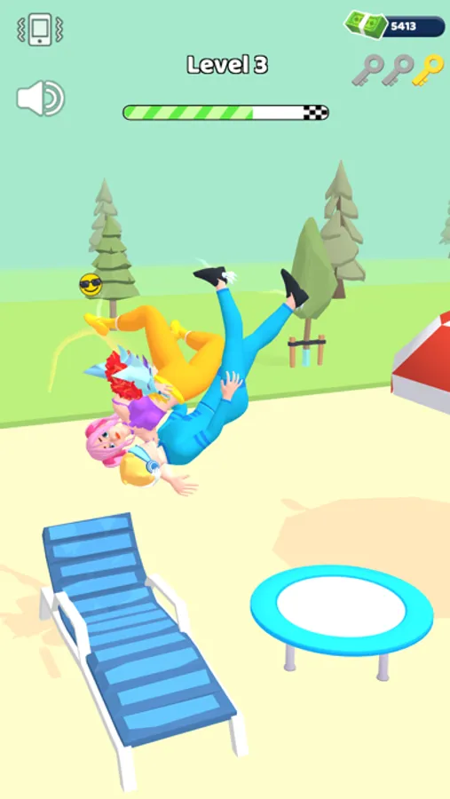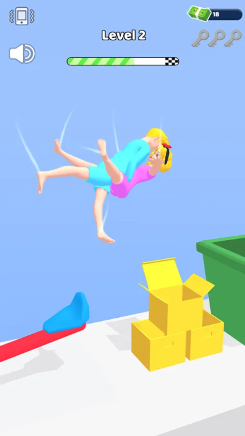 A couple hugged each other and clicked on the screen to flip them forward. You can move a distance when riding or skateboarding halfway. You need to protect the couple's head from touching the ground.