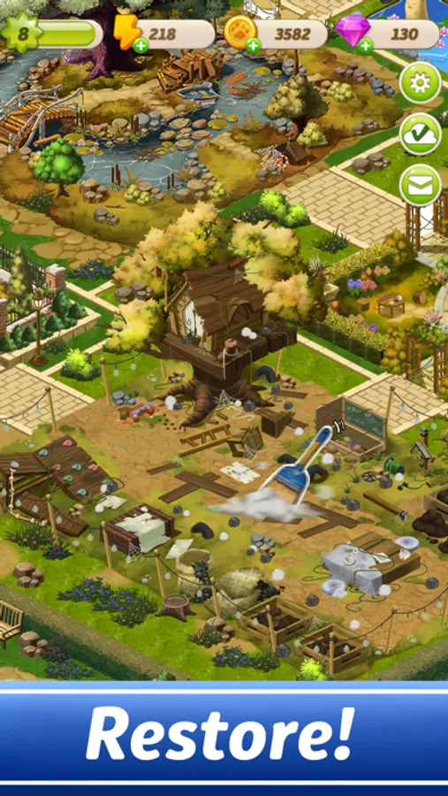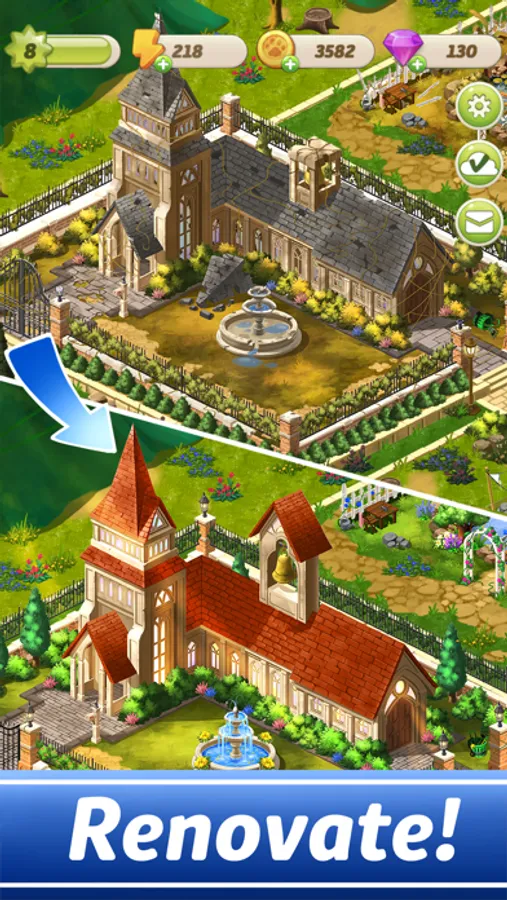 Renovate the garden and solve challenging puzzles with this relaxing and romantic free merge-2 blast game!