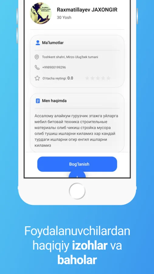 “Mening ishim” mobil ilovasi kundalik va biznes muammolarni hal qilish uchun Ijrochilarni topish uchun xizmat qiladi.