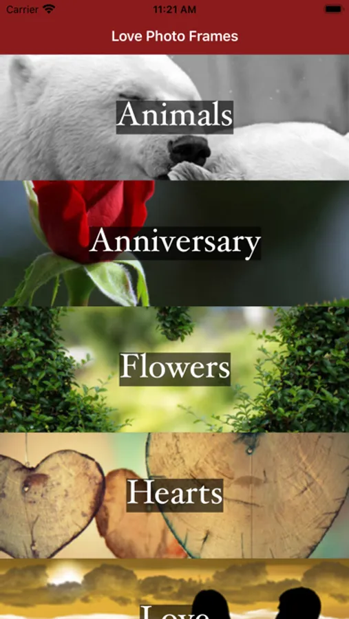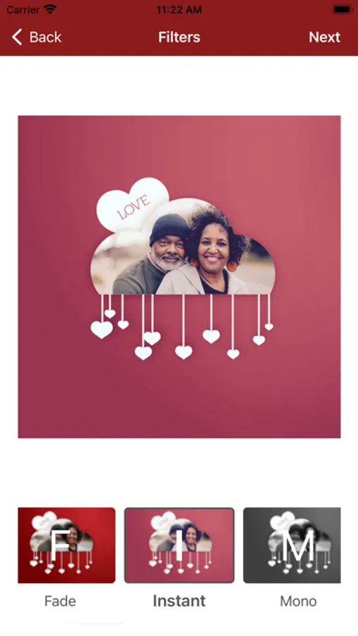 With this app, you can create your own collages with love frames where you can add your own photos.