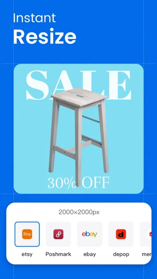 - Resize Tools: Support custom size and offer ready-to-use sizes for all eCommerce platforms, such as Poshmark, Amazon, eBay, Shopify, etc