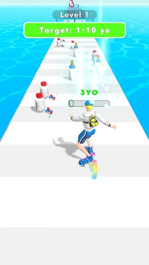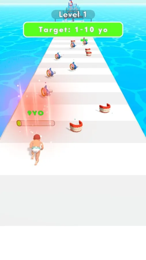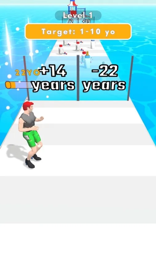 Choose the right gates and collectibles to reach the target age. Don't get too old otherwise, your journey will end!