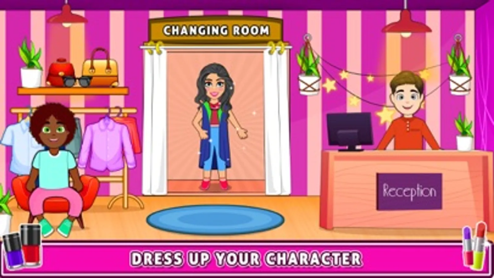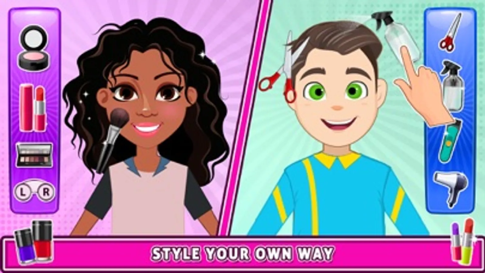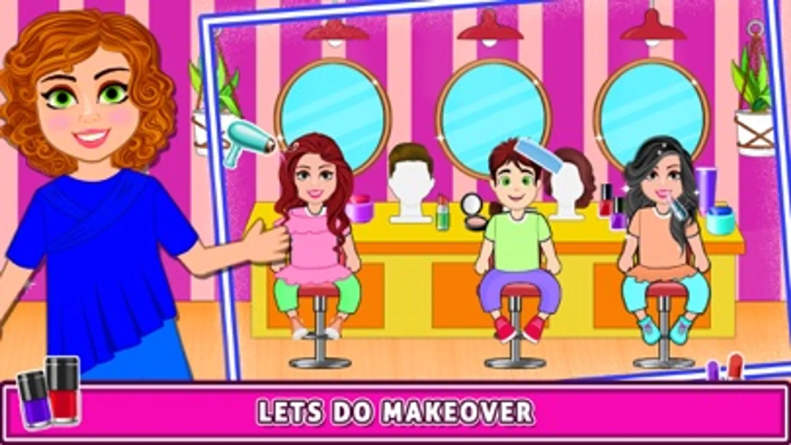 Let your imagination go wild in this mini city fashion salon game like a pro fashion stylist and make awesome hairstyles of the popular fashion stylist girls in makeup Spa Salon or dress up games for girls. Be a pro fashionista hair stylist in the town and create cool haircuts, dress up, fashion makeovers like a spa salon stylist in make up games for girls. Get ready to give the princess a fashion makeover and enjoy these amazing Makeup games & dress up games for girls. Give awesome braided styles to hair, choose gorgeous spa makeup from a kit, give the bridal girl a lovely dress up and enjoy a bundle of roleplay fun in DIY fashion boutique games for girls.