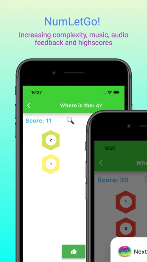 NumLetGo! is an app for young children that aims to support the development to recognize letters and numbers. In various complexities the numbers/letters are shown, and a voice will ask a question to find a specific number/letter.
