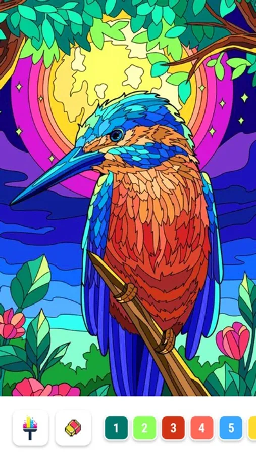 Apply variety of colors or patterns by number to create a masterpiece artwork.
