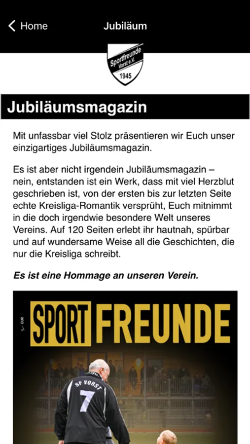 Unsere offizielle Vereins-App mit den wichtigsten Informationen und Nachrichten schnell auf einem Blick mobil auf deinem Smartphone. Alle Spiele und Ergebnisse unserer Senioren- und Jugendmannschaften jederzeit im Blick behalten. Dazu gibt es alle Ansprechpartner und Trainer der Sportfreunde!