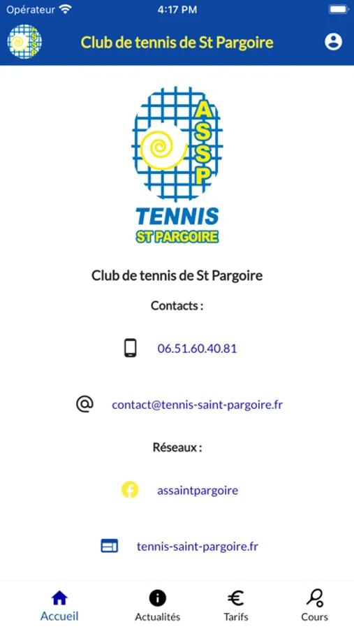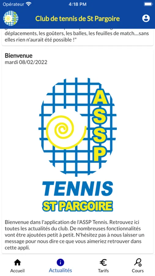 Application du club de tennis de Saint Pargoire.