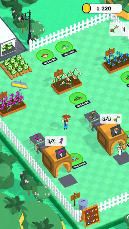 Pick up seeds, plant them, make your flowers and plants grow then sell them to your customers!