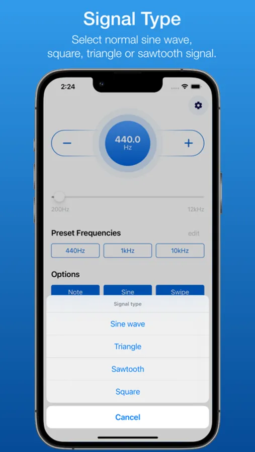 Tone Generator is a free frequency sound generator app that allows you to generate sounds in different frequencies from the lowest to the highest ranges, from 1Hz to 22kHz. Using this free frequency generator app, you can test your hearing, test audio equipment, tune different instruments, perform audio experiments, and much more.