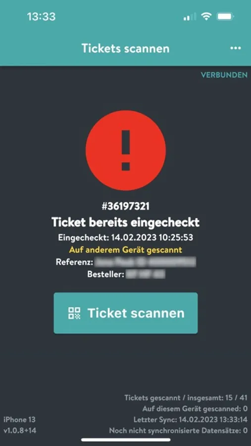 Ticket Scanner für die Einlasskontrolle der DGBRT Ticketing Plattform