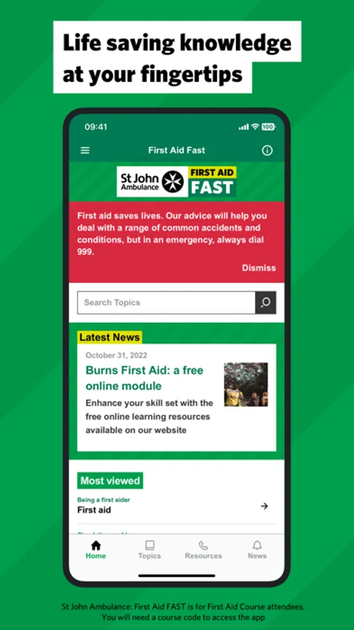 First Aid FAST is an exclusive app available for anyone attending St John Ambulance’s First Aid at Work and Paediatric First Aid courses. Whether you’re an office worker with a colleague who has suffered a cardiac arrest or a scout leader assessing an unresponsive casualty, with First Aid FAST you have reference and reassurance at your fingertips.