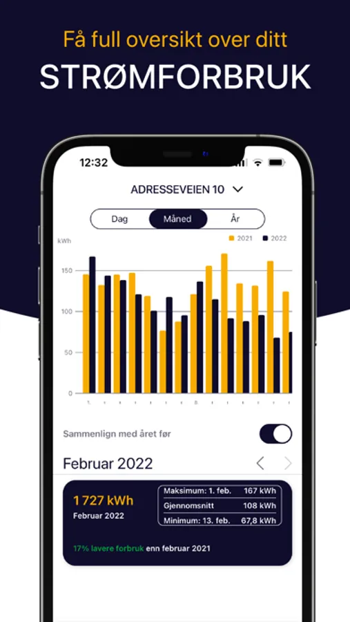 The Øvre Eiker Strøm app gives you full overview of your customer relationship. You get an overview of your power consumption and can easily compare current and historical consumption. If you have several subscriptions and meters, all of them are available in the app. You will also find an overview of your invoices and their payment status. Welcome to us!