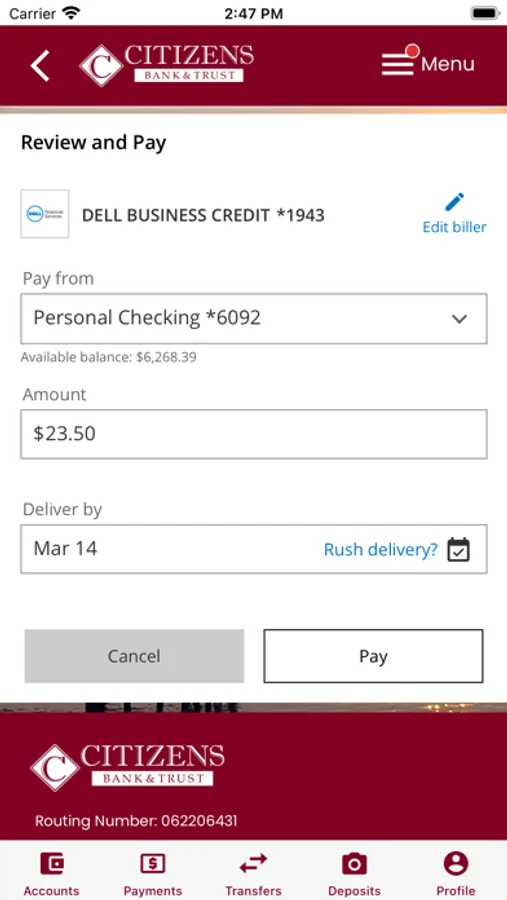 Make payments to billers and view recent and scheduled payments.