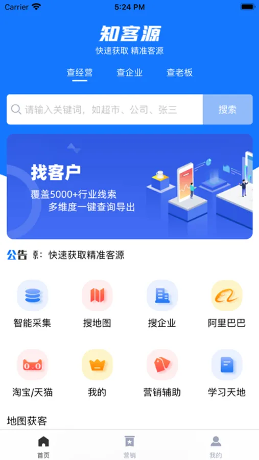 知客源整合了所有行业和多个信息门户,使软件里的数据更加细化、透明化。知客源线下具有实体拓客、搜企业、线上具有搜各大类主流行业门户网站等全方位功能,多渠道数据来源、大数据精准获客,助力企业突破营销壁垒。