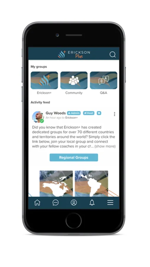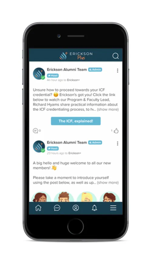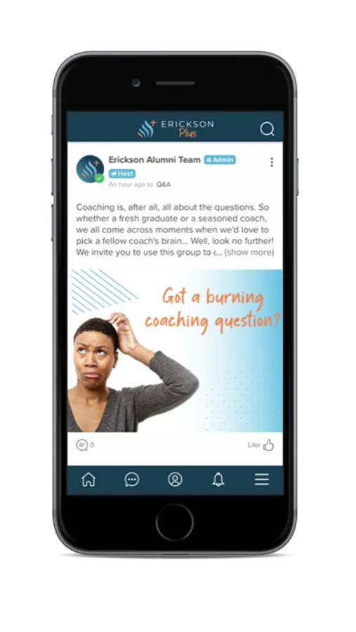 The Erickson+ app is a dedicated networking, practice, learning and development platform for alumni of Erickson Coaching International.