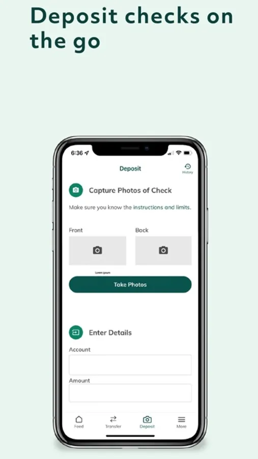 - Deposit a check in seconds by taking a photo - unlimited check deposits & no additional charge