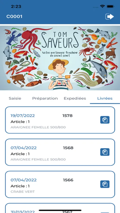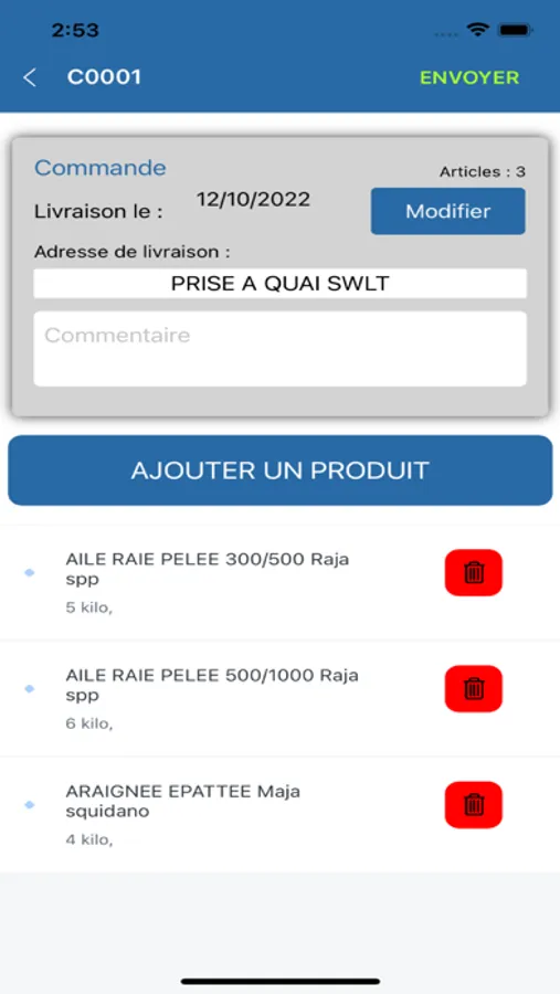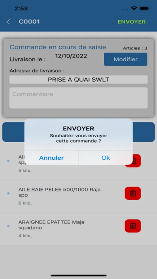 l'historique des commandes , et lors de l' envoie de la commande