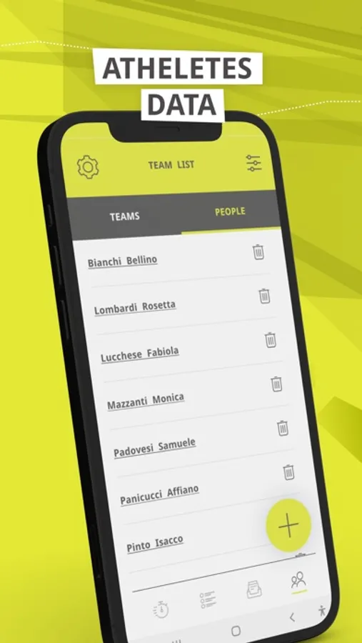 In the athletes’ personal data section we can add a list of people with their main characteristics.
