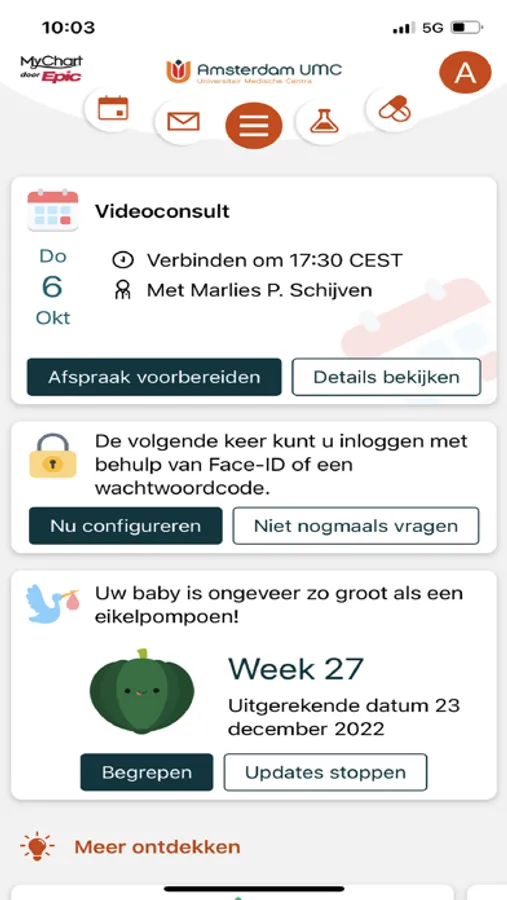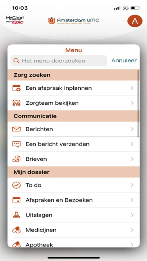 In de app Mijn Dossier Amsterdam UMC kunt u: