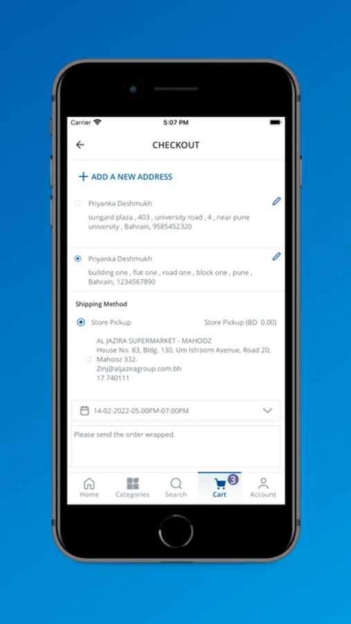 You can book a free home delivery slot by placing a Minimum order of BD 7 or avail of our Click & Collect slot free of charge.