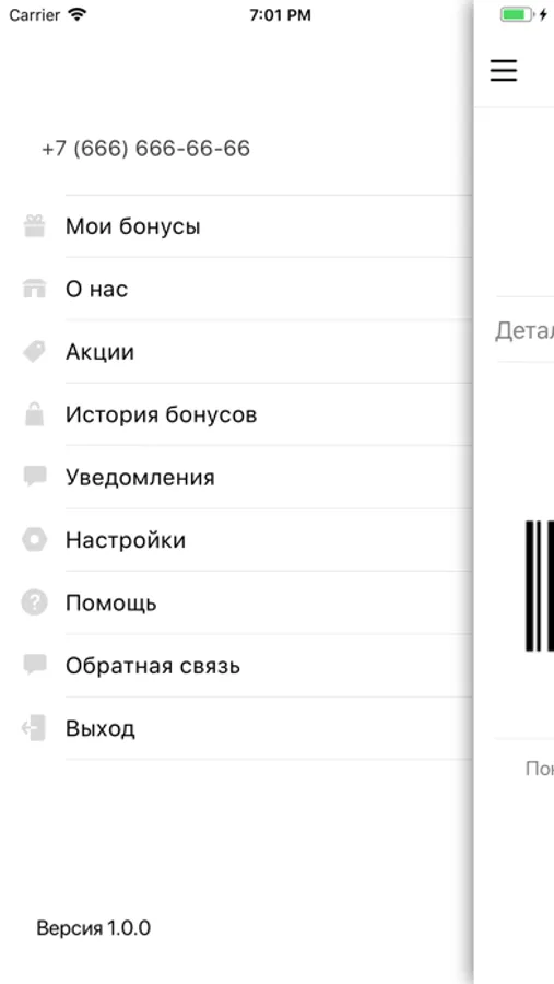 - просматривать баланс бонусных баллов в программе лояльности;