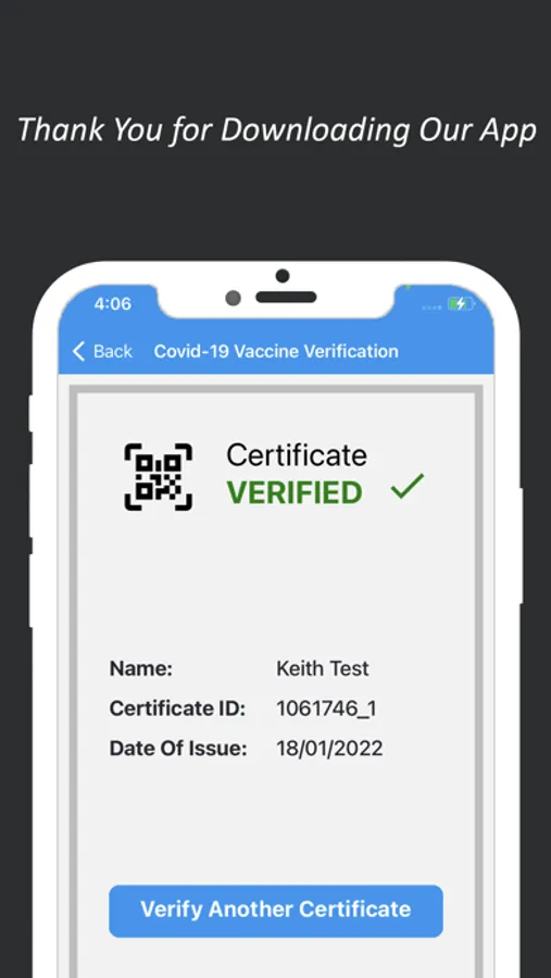 This app is used to verify only Covid certificate. So, if a valid certificate is scanned then required information will be shown else appropriate message will be displayed.