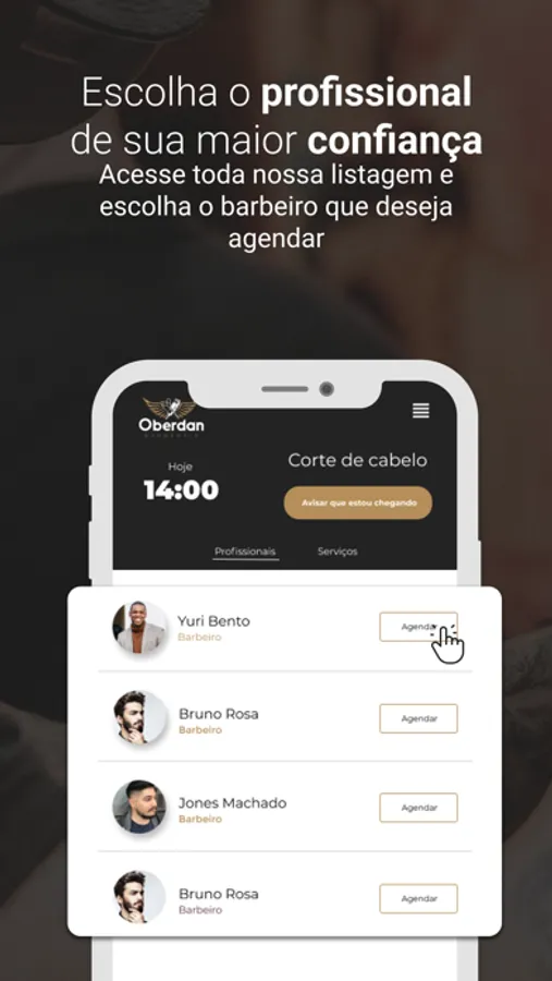 Através do app você pode agendar rapidamente um serviço com seu profissional favorito.