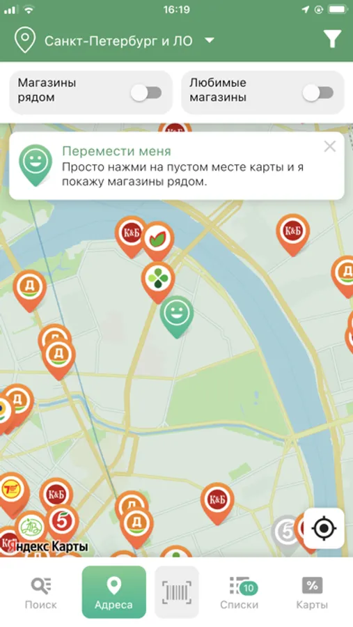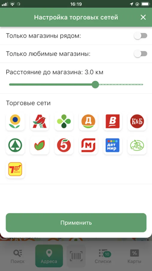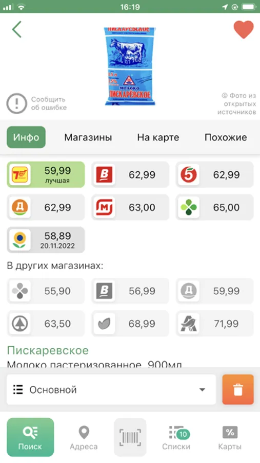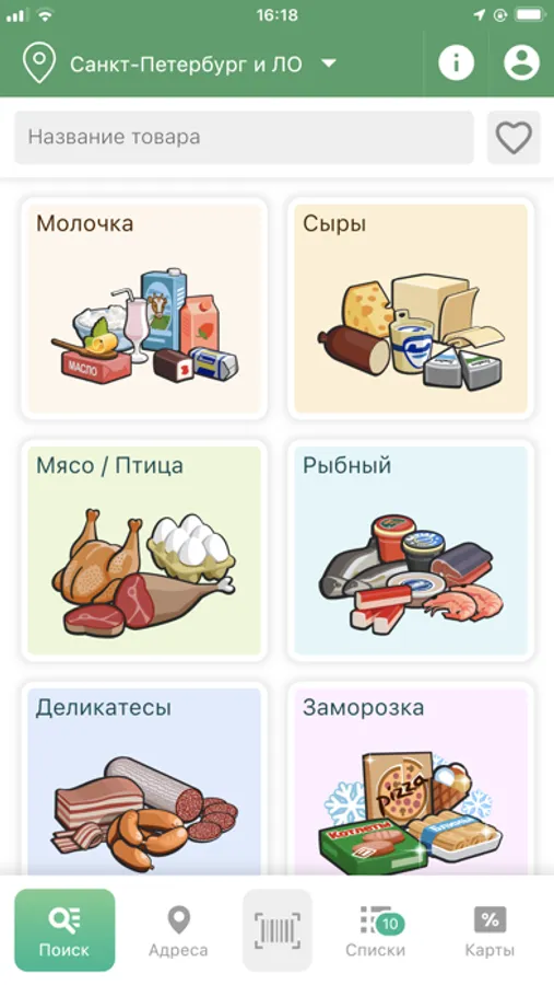 При помощи приложения Вы найдёте продукты с выгодными для Вас ценами в ближайших магазинах. Составить список Вы сможете как через строку поиска, так и сканируя штрих-код или по рубрикам каталога.