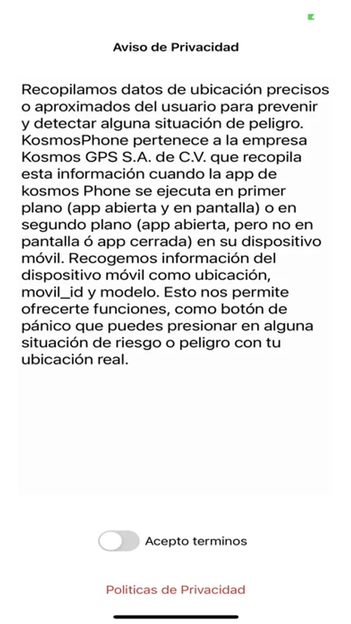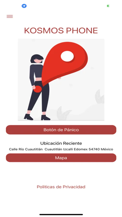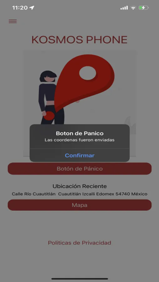 kosmos Phone tiene como objetivo obtener la ubicacion en tiempo real del usuario para brindarle seguridad, se implemento un boton de pánico, si el usuario se encuentra en una situacion de riesgo o peligro, la alerta es enviada al area de monitoreo para contar con una respuesra inmediata ante cuaquier situacion