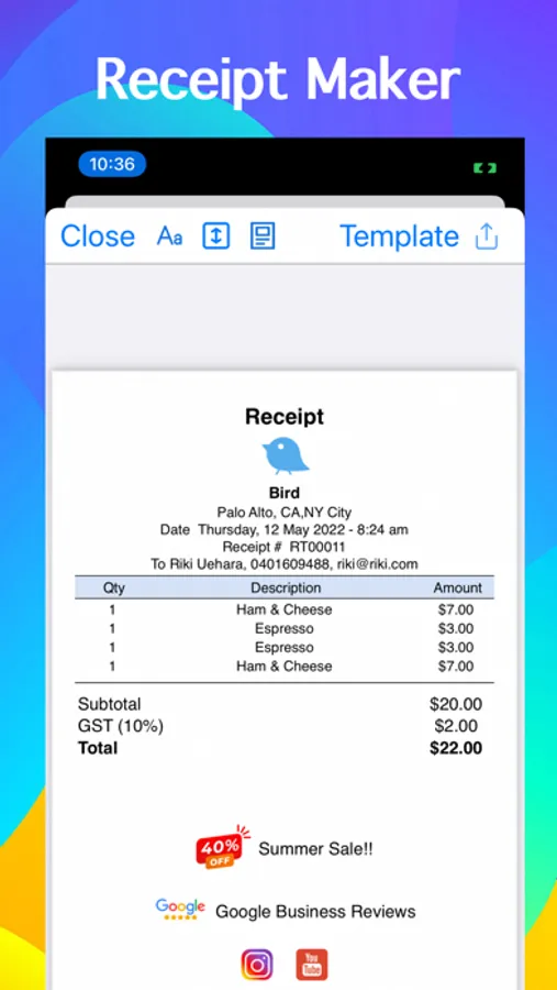 Impress your customers with sleek and customizable digital or printed receipts. Add your business logo, contact information, and terms and conditions to create a polished and professional look. Email or text receipts directly to customers for their convenience.