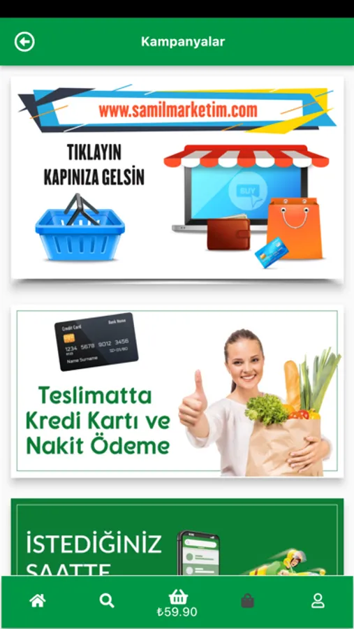 Bu Uygulama cep Telefonunuzdan veya Tabletinizden alışveriş yapma imkanı sağlar. Kapıda ödemi sistemi ile siparişleriniz özenle seçilerek paketlenir. En hızlı şekilde evinize teslim ediyoruz.