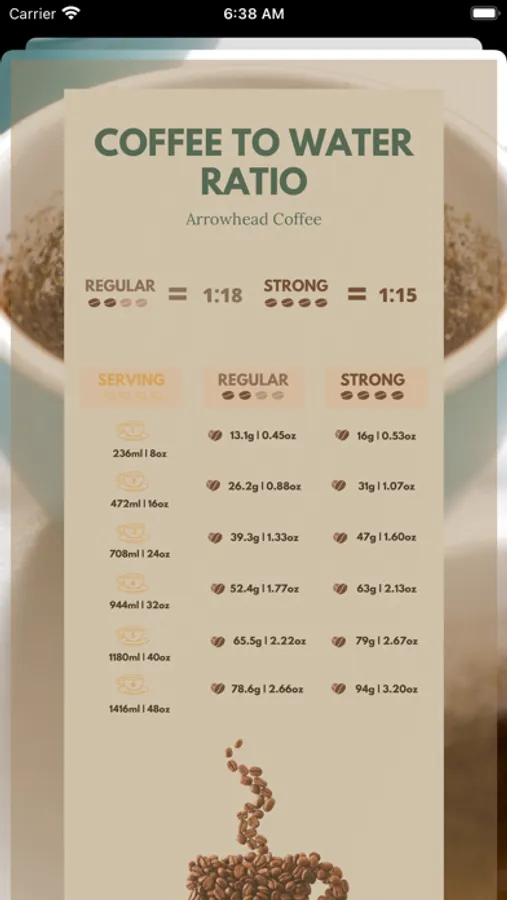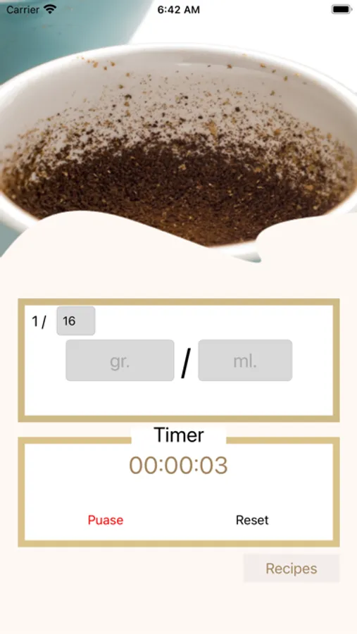 An application for calculating the ratio of coffee and water grams per cup. you can create you own recipe and share it