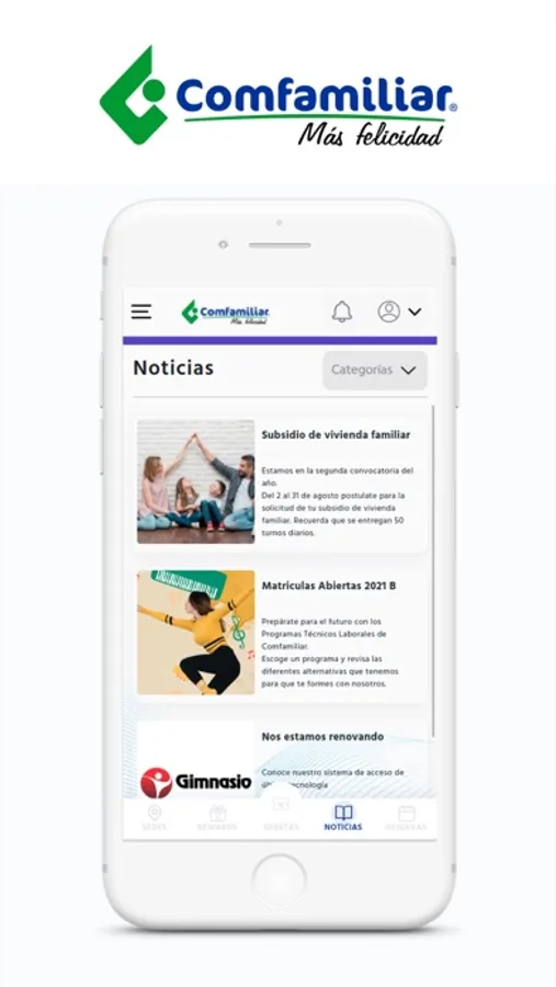 Aplicativo de Comfamiliar para controlar el acceso a sus gimnasios, ademas podrás recibir comunicados y enterarte de lo nuevo que tiene tu empresa para informarte ademas de agendar tu entrenamiento