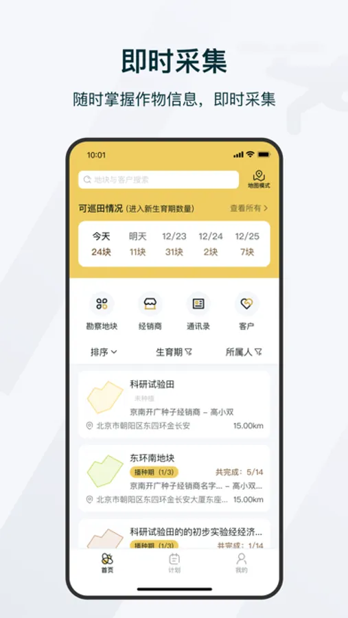 为爱耕耘用户采集作物生育时期各项数据,并给客户进行田间指导。通过让公司内部采集人员使用,为客户提供田间作物生长的数据采集服务工具,输出田间、作物相关方案;采集人员为农户服务并生成分析报告,给客户查看。
