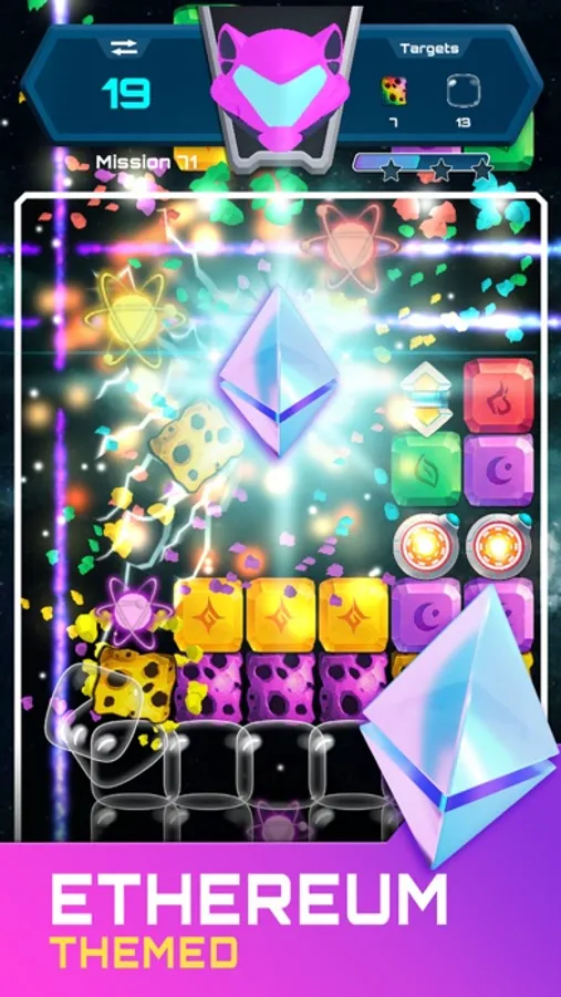 The first Ethereum-themed match-2 game to hit the crypto-verse and the app store is here! Ethereum Blast puts an intergalactic sci-fi spin on the classic blast-2 puzzle game. Each level puts you in the midst of a puzzle-solving mission of epic proportions. Your mission is simple: blast your way through hundreds of levels by completing unique targets at every turn.