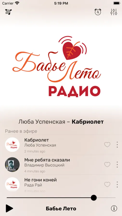 Музыкальное интернет-радио «Бабье Лето» – это онлайн станция, которая передает исключительно душевную, красивую, эмоциональную музыку, направленную на женскую аудиторию. В формате станции собраны лучшие песни русского шансона про любовь, отношения, жизнь и судьбу. Это песни, которые приятно слушать днем и ночью, в праздник и в рабочий день, одной, с подругами или любимым мужчиной…
