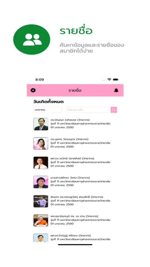 - กลุ่ม: ค้นหารายชื่อและข้อมูลของสมาชิกในกลุ่ม เพื่อให้การติดต่อง่ายกว่าที่เคย