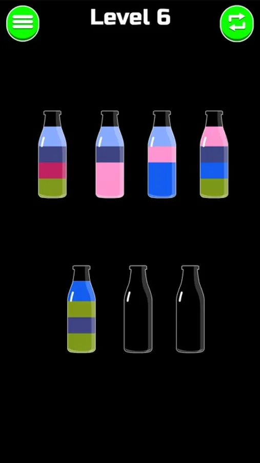 Sort Water Color is a puzzle game with more than 100+ levels. You can chose Easy, Normal, Hard and Expert mode to solve the puzzles. Pour one same color into single bottle to sort the colors.