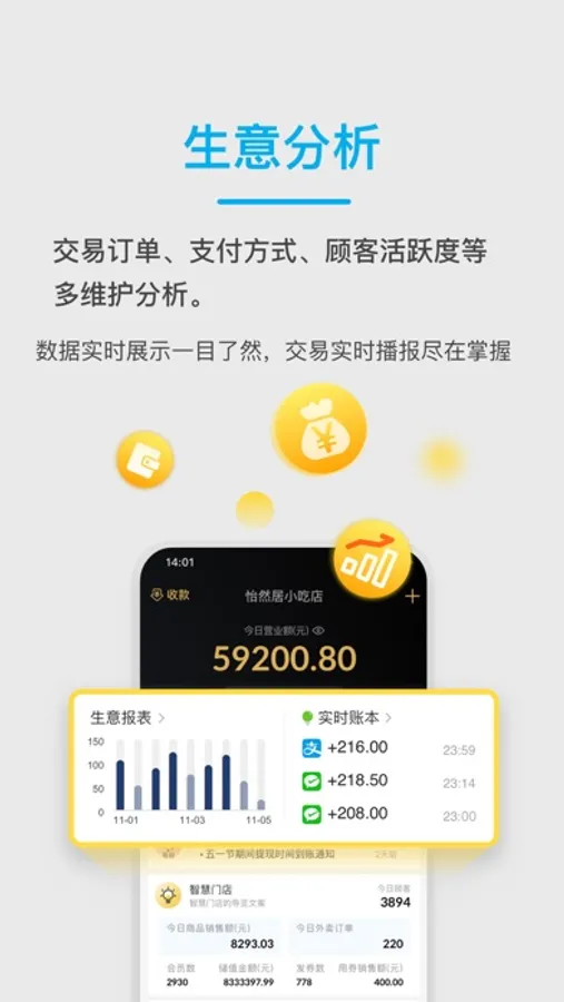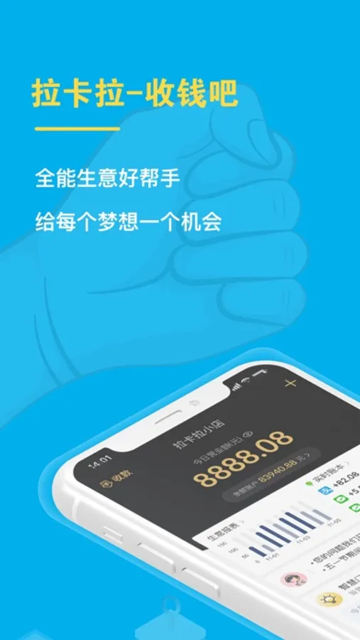 拉卡拉收钱吧是拉卡拉和收钱吧联合打造的专注服务商家运营工具,为商家提供全场景、多渠道、更专业的移动支付解决方案。提供功能强大的会员营销工具,增加消费者粘性,助力商家成长。