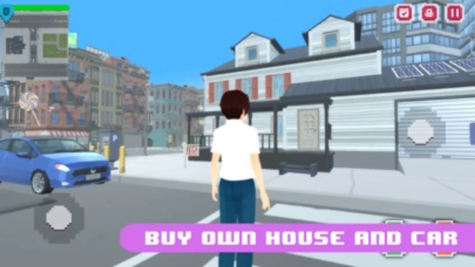 Play the latest anime virtual high school life on Japanese pixel city! Drive vehicles, attack peoples, or become the gangster, you can do it all only on anime city. The city is based on real Japanese city. While you have to fight to gain kawaii senpai love and date him/her. Build your own metaverse!