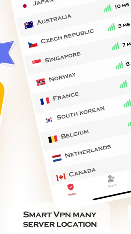 Smart VPN Proxy Server has more than 10+ different regions of the world.