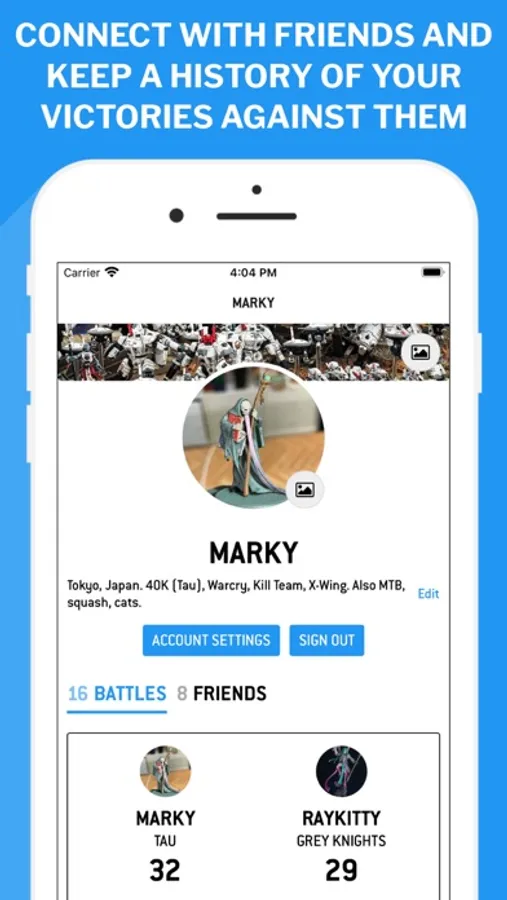 Connect with your friends to start a battle that's linked to each of your accounts, see overall stats of your battle history with each friend, and see your friends' battles against other players through our updates feed.