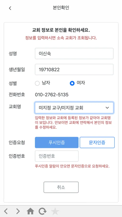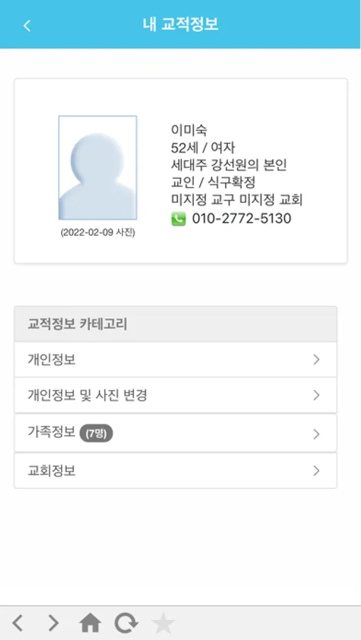 1) 내 교적정보