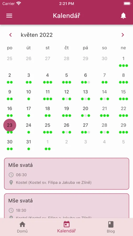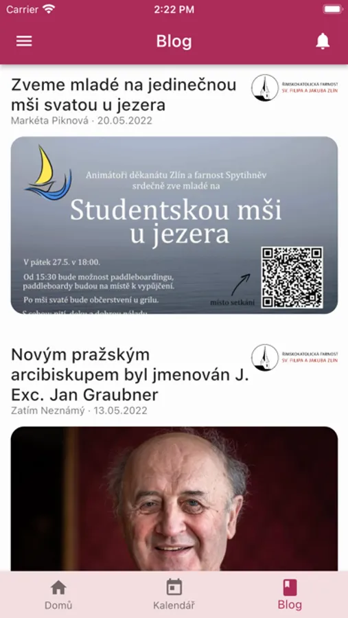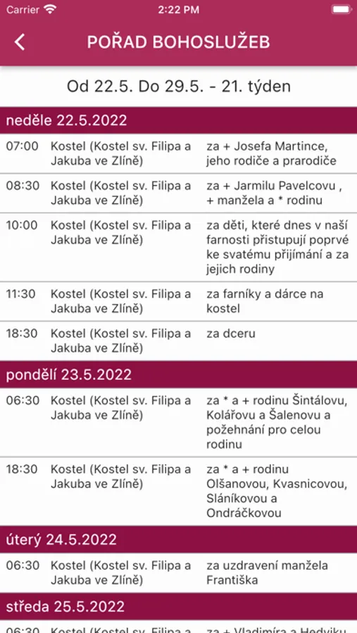 Také je možné přijímat oznámení přímo od kněze podle toho, jakou z kategorií si nastaví.